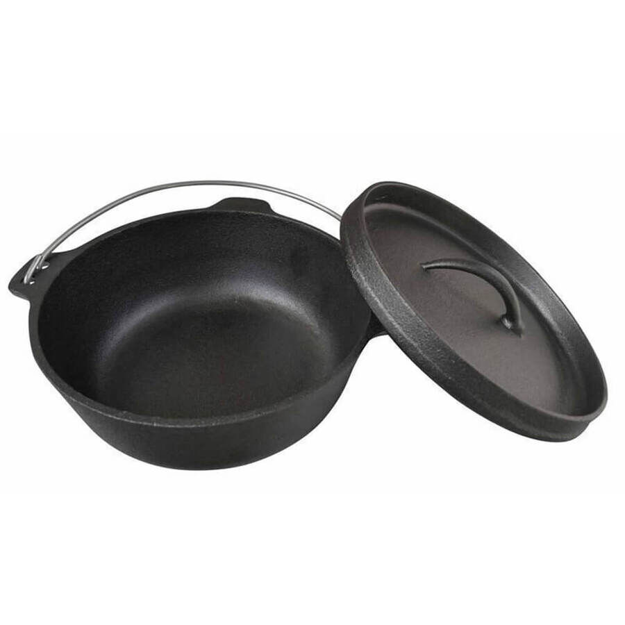 A Dutch oven is a must-have accessory for any serious camper. The Supex 2.5 Quart Dutch Oven - 2.4L is a pre-seasoned, thick-walled cooking pot with a tight-fitting lid suitable for cooking slow-cooked meals.