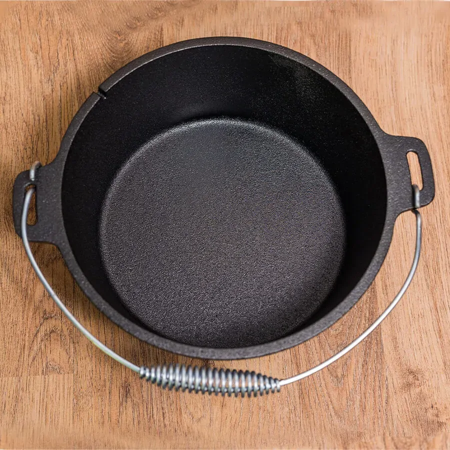The Dutch Oven comes pre-seasoned from the factory and is a thick-walled cooking pot with a moulded lid to give a tight fit around the pot. This makes it the perfect pot for cooking slow-cooked meals by keeping all the moisture and juices in your food.