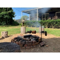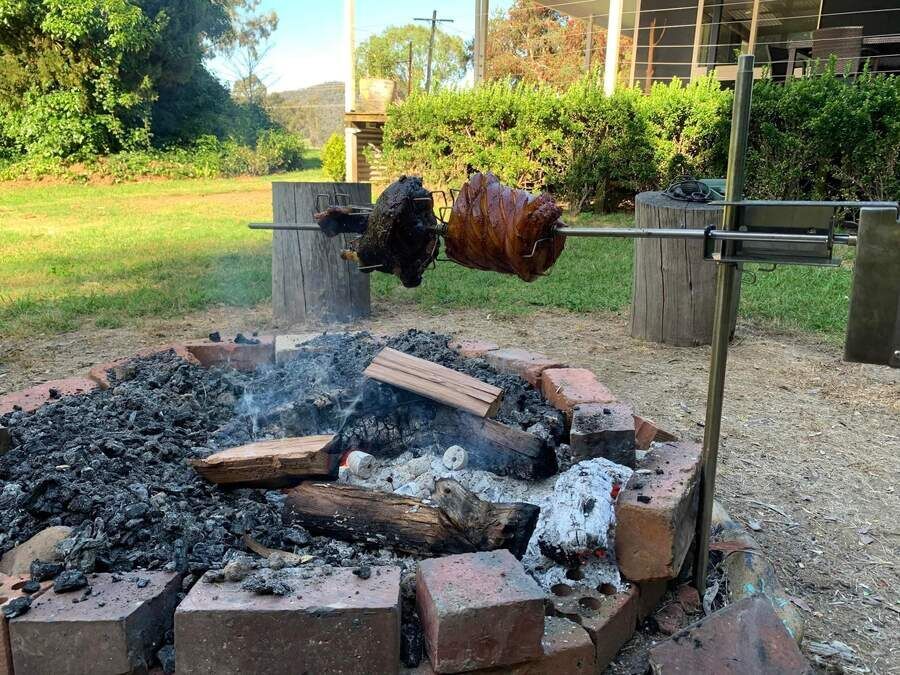 This great little portable rotisserie kit was designed‚ and manufactured by an Australian engineer and bushman‚ Rhett Thompson. His love of camping and the great Australian outdoors got him pondering one evening while turning his snags. He wanted a compact, portable and easy to use spit roaster that would sit there working on the side, cooking up dinner while he was free to enjoy a beverage and have a yarn with his mates. After a few prototypes, Rhett came up with the current design and his mates branded it‚ The little Aussie legend. 15 years later, it is still the same design enjoyed by thousands of campers all around the world. The carrier bracket is a‚ patented design that uses the squeeze lock‚ to stop‚ the meat slowly swinging around‚ away from the fire if the upright post is not perfectly vertical. The skewer is held in place between 2 nylon supports in the carrier bracket‚ ensuring you don't put up with an annoying squeal while cooking, this also lets the motor hang free removing all unnecessary strain.