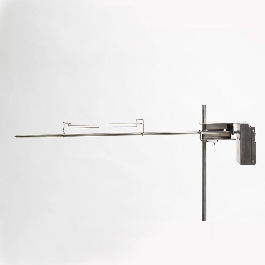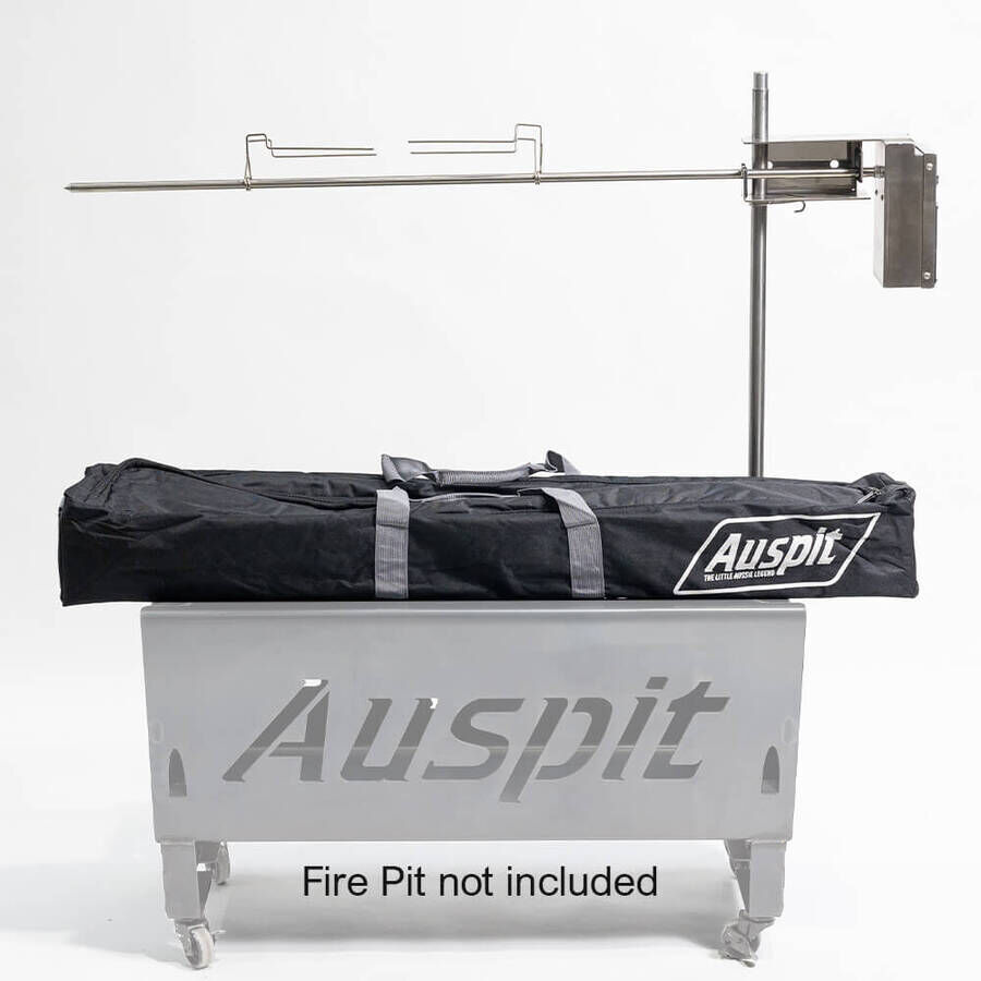 The Australian patented carrier‚ bracket is the key component that separates the Auspit apart from the others that have tried to copy this system and sell it on the Australian market. Together with the squeeze lock, it allows you to adjust the height of the skewer‚ for the ideal cooking height over the fire and‚ allows you to swing the skewer over the fire and then locks in place so it can't slowly swing away. The counter leaver skewer design in the carrier bracket ensures minimal strain is placed on the drive motor bush, giving‚ this spit great efficiency, improving reliability‚ and in turn also‚ improving‚ the longevity of the motor.