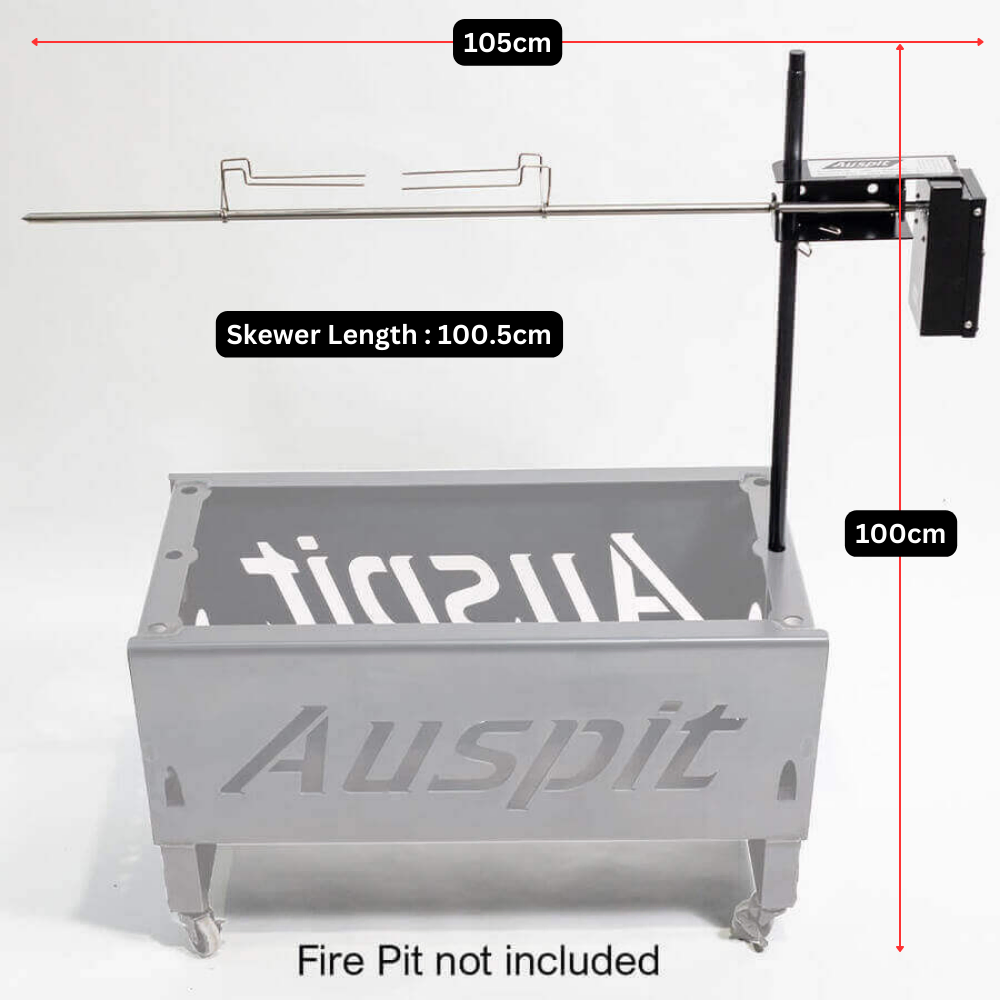 The patented Auspit carrier bracket sets it apart from imitators, giving you precise height adjustment and the ability to swing your skewer securely over the fire. This clever design minimises strain on the motor, ensuring smooth operation and a longer lifespan.