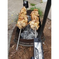 This is the first of three portable spit packages in the Australian-designed Auspit range. Built for campers, adventurers, and backyard fire lovers, this battery-operated spit can cook up to 8kg of balanced meat on its swinging rotisserie skewer. Compact, unique, and simple to use, it comes with everything you need to start your first outdoor spit roast.