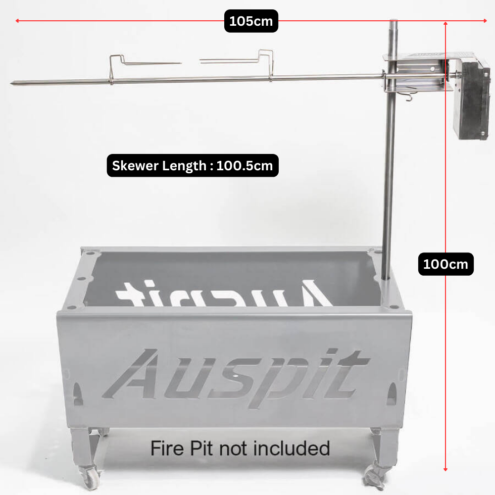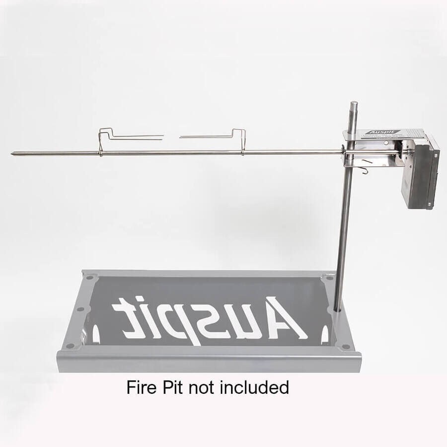 The Auspit Compact Spit Roast Kit - Silver is battery operated and can cook up to 8kg of meat. It is unique and easy to use.