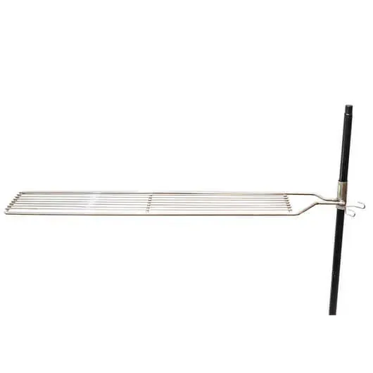To use this Portable camping grill, simply hammer the support post into the ground near your campfire, a depth of around 8 inches is usually enough, next squeeze the springloaded post clamp onto the support post to your desired cooking height. The post clamp can be used with the flat side up to give your grill 360° of free-spinning rotation or with the holder up that lets you lock the grill in place. After the post clamp is in place, slide the camping grill onto the pole. You are now ready to cook, swing the grill away from the fire, load it up and then swing the grill back over the fire. No screws need to loosen to rotate the grill as it rests on the post clamp. If you need to adjust the height during the cook, simply squeeze the post clamp and slide it to your new cooking height. This can all be done with the grill still on the support post.