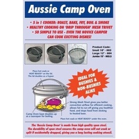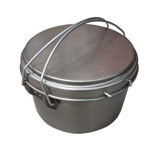 Just like your traditional cast iron dutch oven, the best way to cook in a spun steel Aussie camp oven is to dig a hole roughly 10cm larger in diameter than the oven and about the same depth. Next, light a fire in the hole and let it burn down to coal or more realistically shovel some coals in it from your existing campfire. Next, place the oven on top of the hot coals and shovel a few extra coals on the lid, then allow the food to slowly simmer until it is ready.