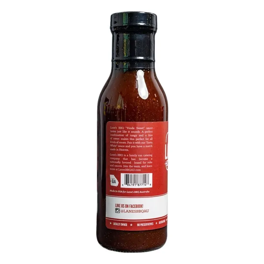 Lanes BBQ Sauce - Kinda Sweet 400ml is a great combination of tangy and a kiss of sweet that makes this perfect for all kinds of meats. Pair it with our “Sorta White” sauce and you have a match made in Heaven.