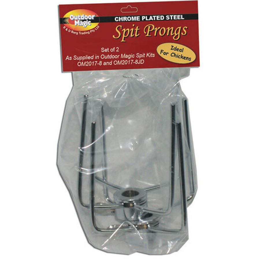 These Chrome Plated 4 Forked Prongs are perfect for cooking chickens on an 8mm thick, square skewer and the BBQ Rotisserie Kit. Includes 2x Prongs.
