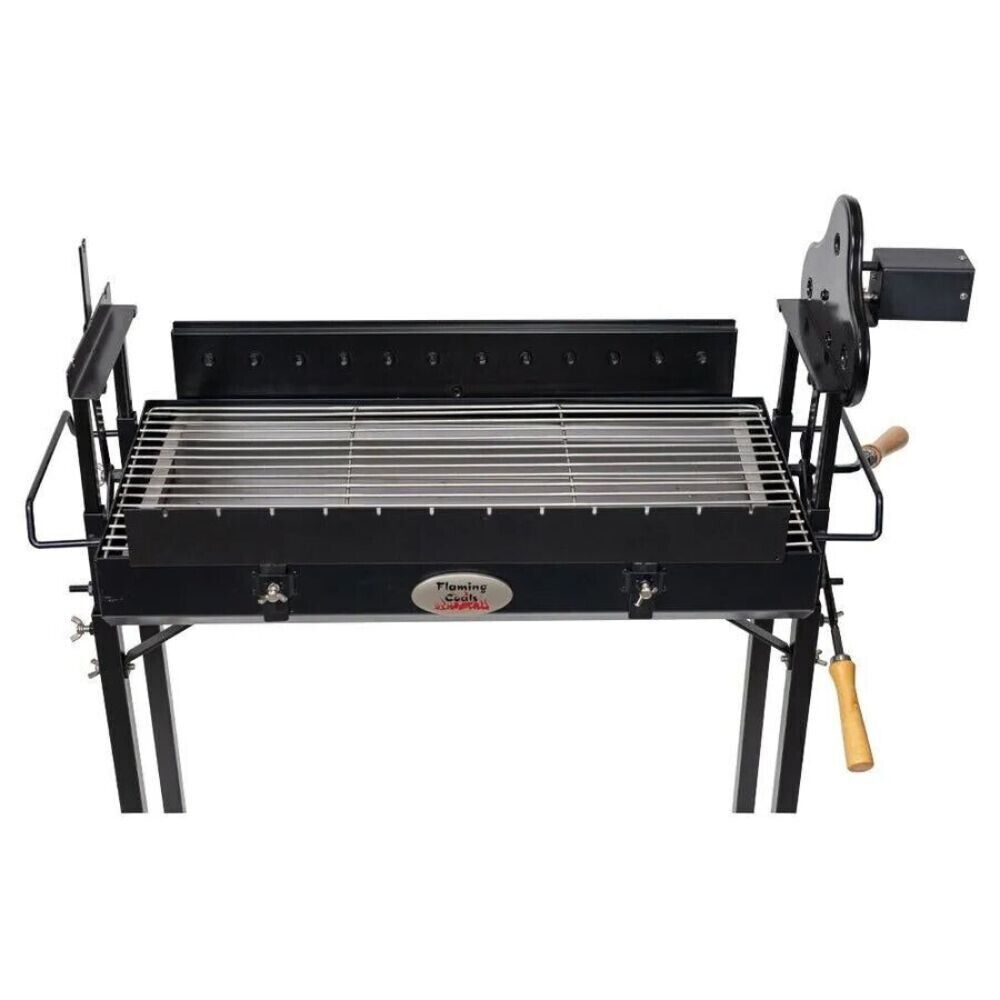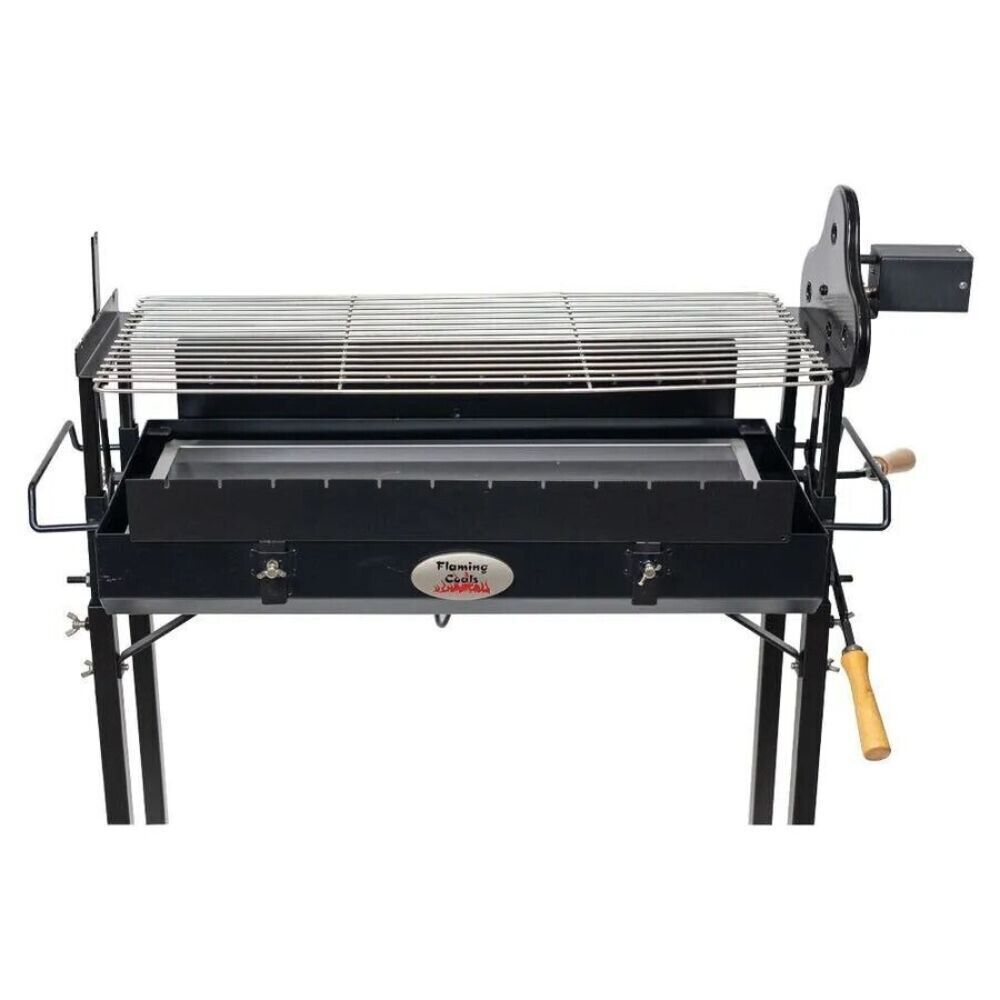 As the mid-range option in the Flaming Coals Cyprus Spit range, the SP004-13E still outperforms other brands in its class. Key benefits include hip-height legs so you don’t need to bend, stronger 4mm kebab skewers instead of weaker 2.5mm versions, an easy lever adjustment system for safe control, a stainless charcoal tray for added body protection, and stainless steel skewers that won’t peel over time.