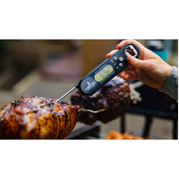 The Portable Digital BBQ Thermometer delivers fast, accurate readings in just 4 seconds with a 240 degree rotating probe and handy magnetic backing for easy access on your BBQ, smoker or fridge.