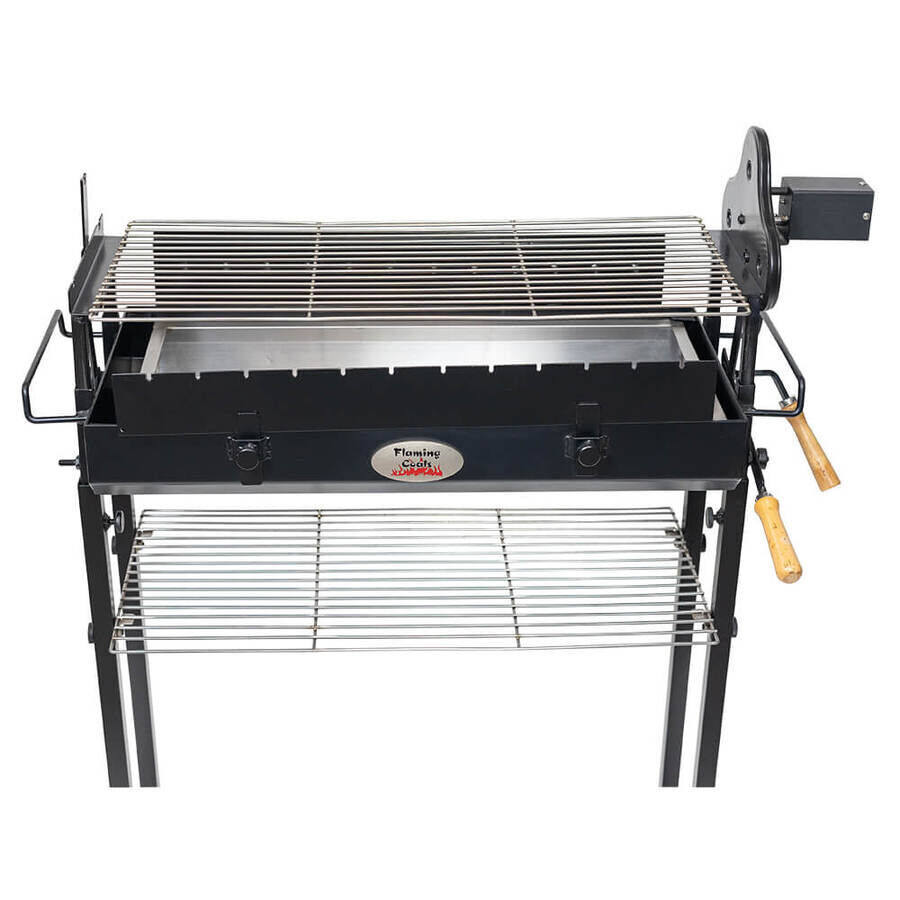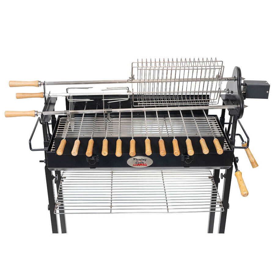 Cyprus Grill Spit Deluxe [Motor: 12/240v 13kg] - Flaming Coals