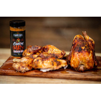 Flaming Coals Clucking Mad Chicken Rub - is an amazing combination of herbs and spices that will cause your taste buds to explode. Whether you're cooking whole chickens, breast or thigh, the Flaming Coals Clucking Mad chicken rub is to be a winner for the entire family