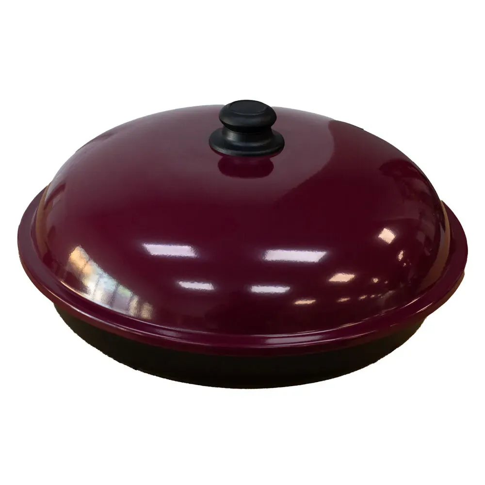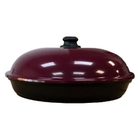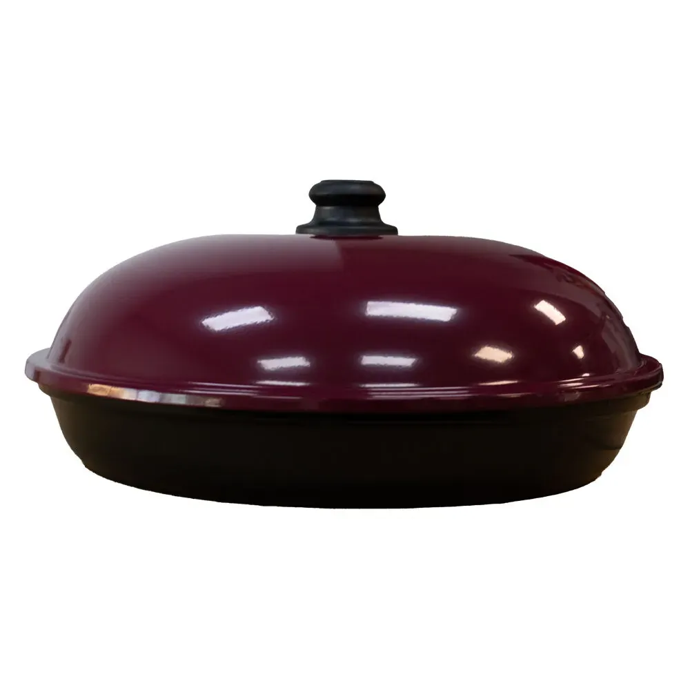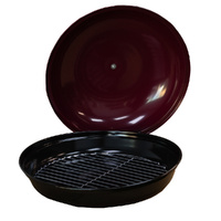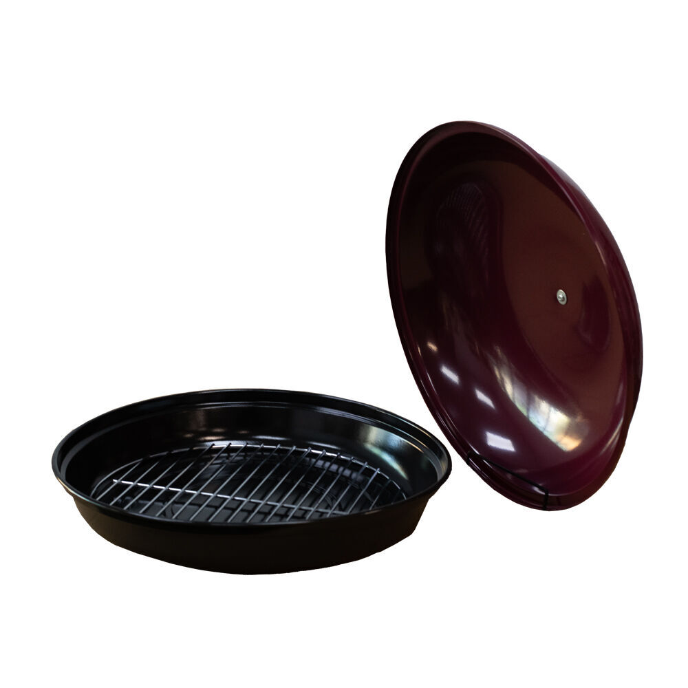 Food Meat Warmer | BBQ Hot Platter | Extra Large | Burgundy. Keep your BBQ meals hot and fresh with the BBQ Hot Platter. Featuring an enamel base, powder-coated top, and hi-lid, it keeps food warm, covered, and free from flies. The built-in fat drain promotes healthier eating, while the included wire rack doubles as a cooling tray. Perfect for outdoor gatherings!