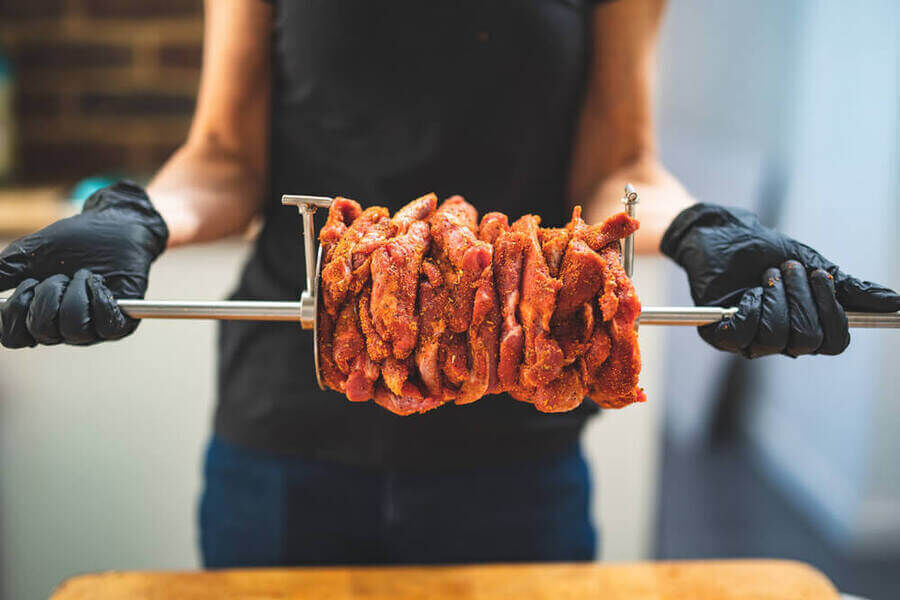 Gyros Disk for Auspit - Pair will assist you in affixing gyros onto your skewer. Just squeeze your meat in between two disks and they work as well as a prong/spike. But it's easier to carve the meat because there aren't any spikes to avoid.