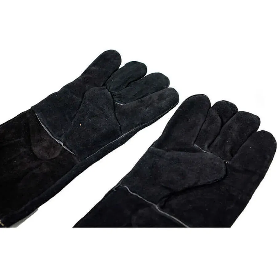 Protect yourself from burns when cooking on your BBQ, smoker or pizza oven. These Flaming Coals Heat Proof Leather Gloves are made from leather and have a soft cotton insulated lining for comfort and extra heat resistance. They are 42cm in length and have reinforced palms and fingers for increased protection.