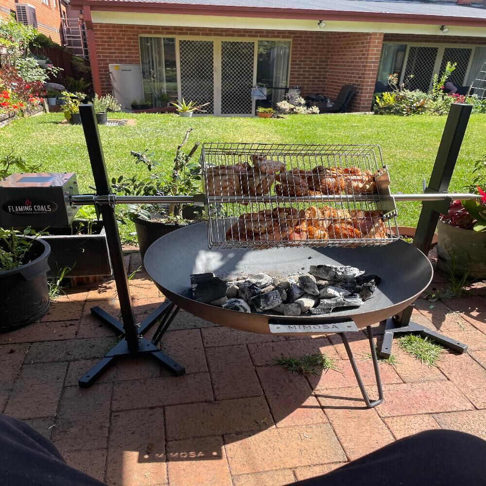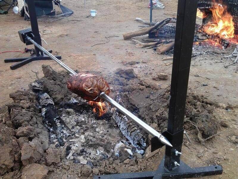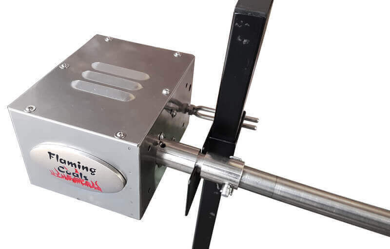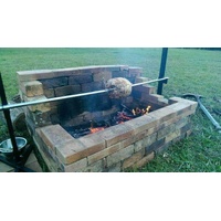 With the motors, you have the option of a 12/240V motor rated at 20 kg of balanced load or one of three 240 volt motors with a power capacity rating from 30kg to 100kg of balanced load. The solid skewer and cross-leg design also make this rotisserie perfect for mounting alongside your firepit at home.