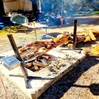This Heavy Duty Portable Camping Spit Roaster is perfect for camping, sitting over a 44 gallon drum (not included), setup over your firepit, or cooking directly off the ground in front of your campfire. It was designed by a camping nutter who loved hunting and camping but also wanted the best equipment for the job. As a result of this, the portable spit was designed with strength and stability in mind which makes it far more superior than other portable spit sets available on the Australian market. It comes complete with stainless steel accessories for securely attaching the lamb or pig to the spit, extra tall supporting legs with height adjustment functionality so you can adjust the height to suit your fire, pegs to pegs in the stands to the ground so your spit won't tumble over, a solid 1 piece 22mm diameter skewer and a quick-release locking pin.