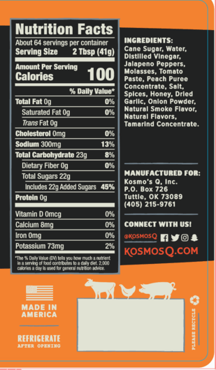 Kosmos Q Honey Jalapeno BBQ Sauce