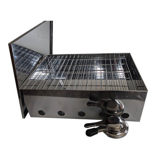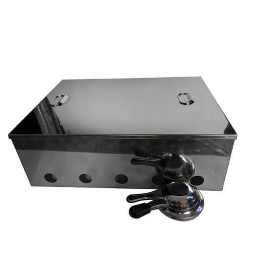 Outdoor Magic Stainless Steel Fish Smoker is made of 430 Grade stainless steel and light weight. Easy to clean and with its sturdy design and portability, you can take it anywhere to cook delicious smoked dish. With free 500g smoking sawdust.