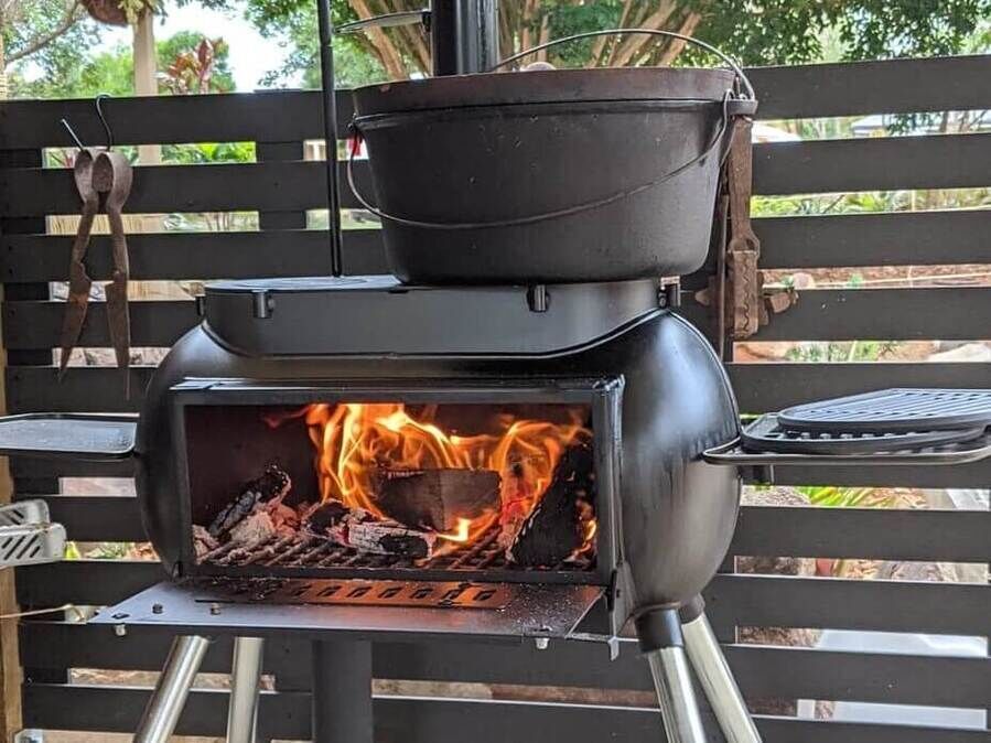 The Ozpig Big Pig camp oven/potbelly is designed as the ultimate outdoor woodfired stove and fire. You’ll love sitting outside with the Big Pig keeping you warm. Great for the verandah, the Big Pig offers a large front opening and dual-zone cooking to make this a really versatile outdoor cooking option.