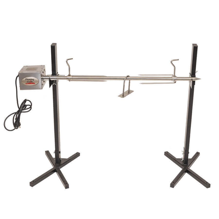 If you prefer a tripod-style portable setup for home use with a solid 1-piece skewer and heavier-duty motor options, check out the Heavy Duty Portable Spit Roaster.. It offers the same portability with extra strength for frequent home use and larger roasts.