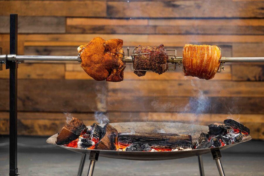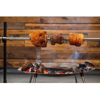 | Skewer | 2-piece stainless steel skewer 160cm L × 22mm D. Can be used as a full-length rod or halved for smaller roasts |