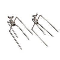This spit roast chicken pack comes with 2 end chicken prongs and 1 double ender chicken prong. This starter pack is suitable for 2 whole chickens to be cooked at one time on a spit roaster. Also can be used for cooking other smaller cuts of meat.