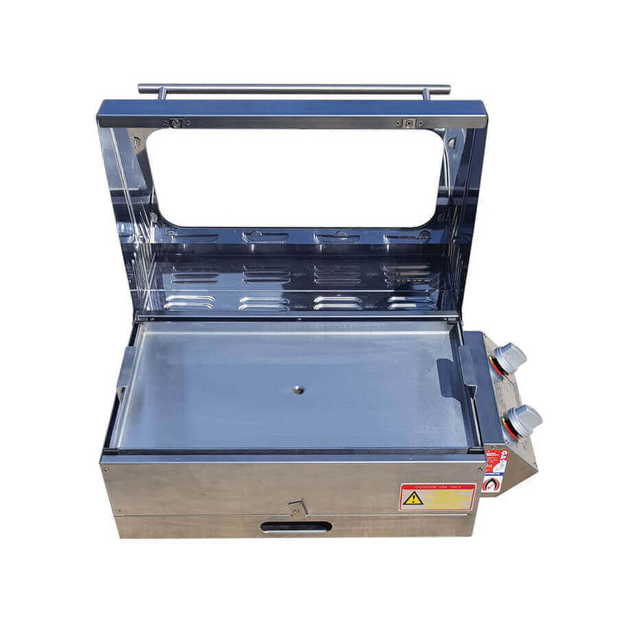 Equipped with AGA-approved flame failure devices on each burner, this BBQ ensures maximum safety. If the flame goes out, the thermocoupler automatically shuts off the gas supply, allowing it to be legally connected to your caravan or RV’s bayonet fitting in Australia.