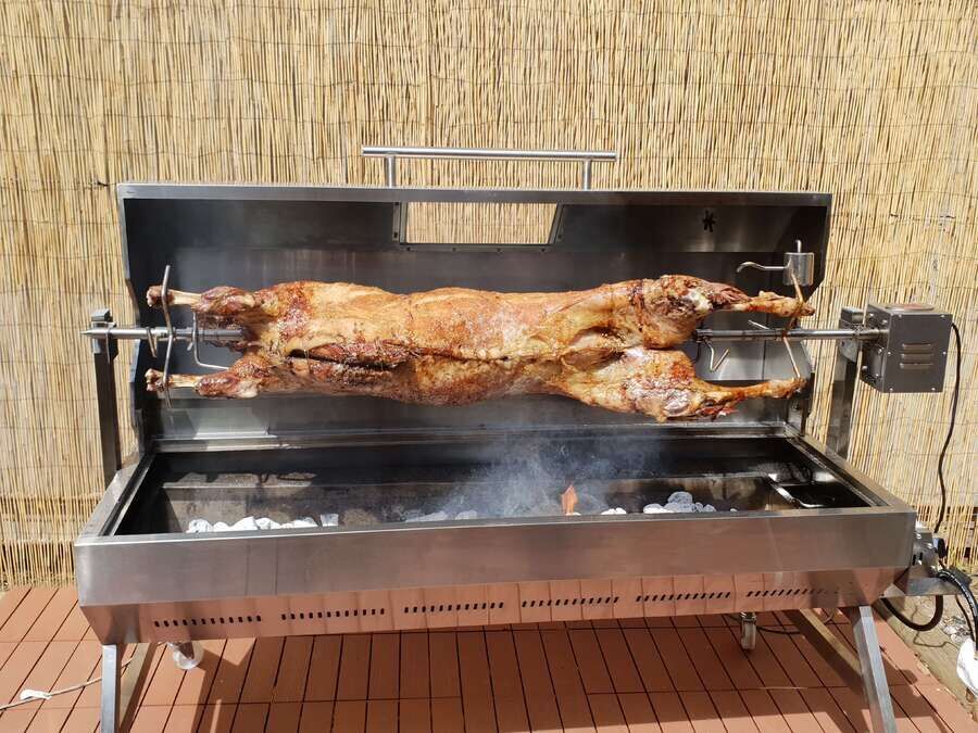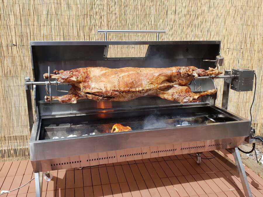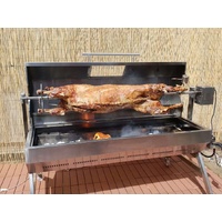 This solid one-piece stainless steel spit skewer is strong enough to hold 60kgs of meat. Made from solid 340 food grade stainless steel and weighing over 5kgs, this solid spit rotisserie rod is definitely an item made to last a lifetime.