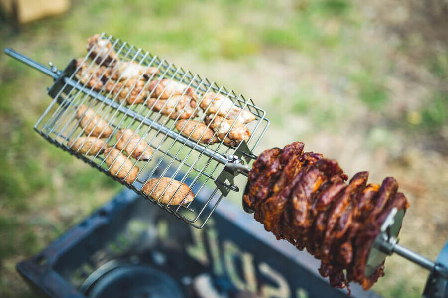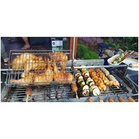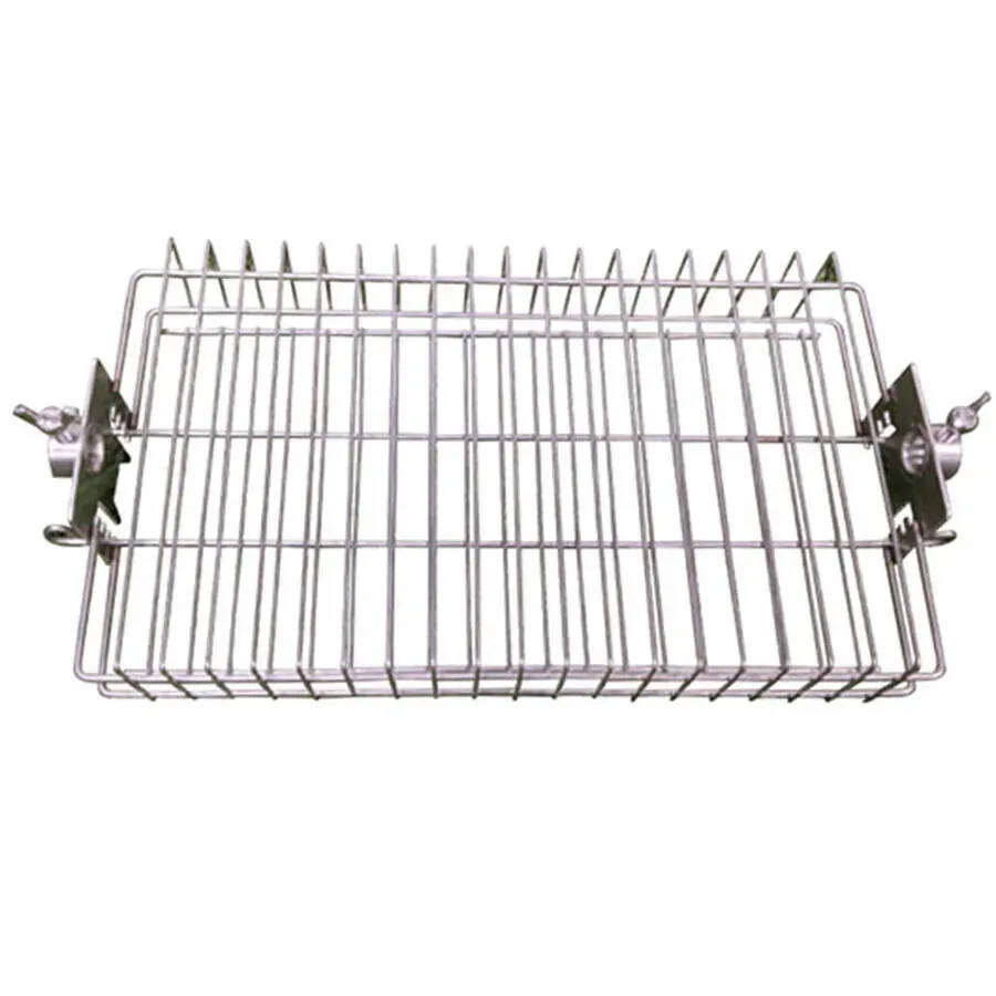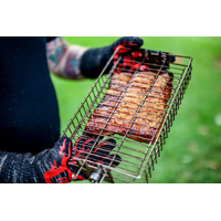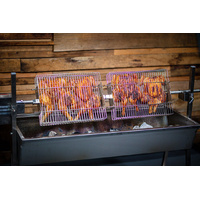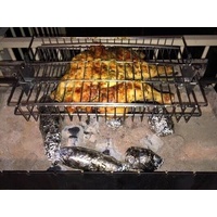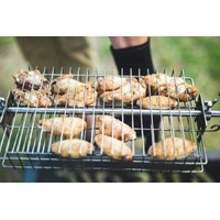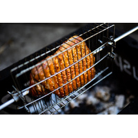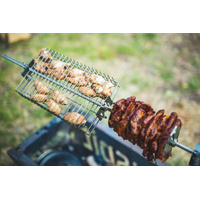 Our high-quality Auspit Spit Rotisserie Adjustable Basket is a great accessory for cooking anything that you can't cook on a skewer such as chicken wings, fish, sausages, vegetables, butterflied chicken, just to name a few. To use, firstly marinate your meat then put it in the basket, close the lid and just it to the thickness of the meat, next feed it on the skewer and switch on your spit. The basket will rotate cooking both sides of your meat evenly and the juices going round and round will self marinate the meat giving you a mouth-watering meal. The adjustable depth of the stainless steel basket makes this Auspit accessory extremely versatile for a huge range of cooking options.
