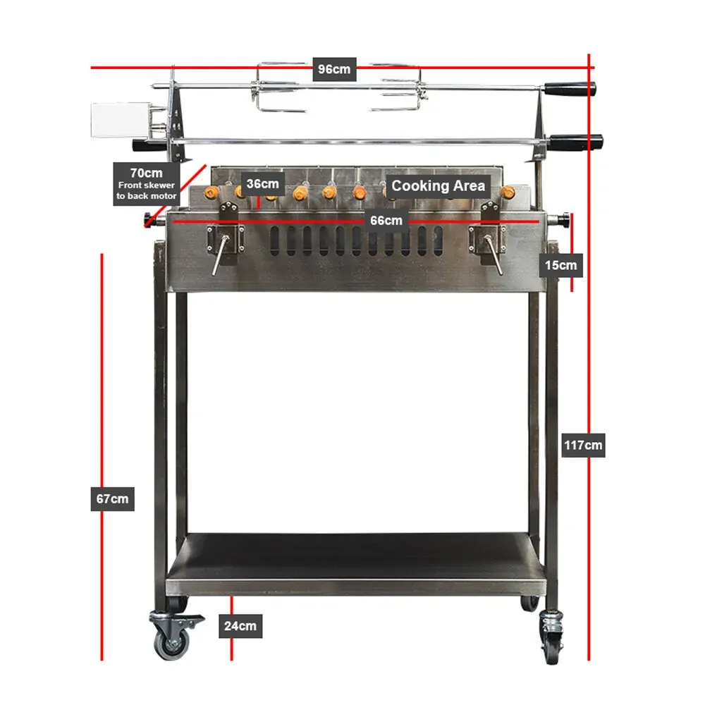 | Motors | 2× 15kg variable speed motors for reliable skewer rotation |