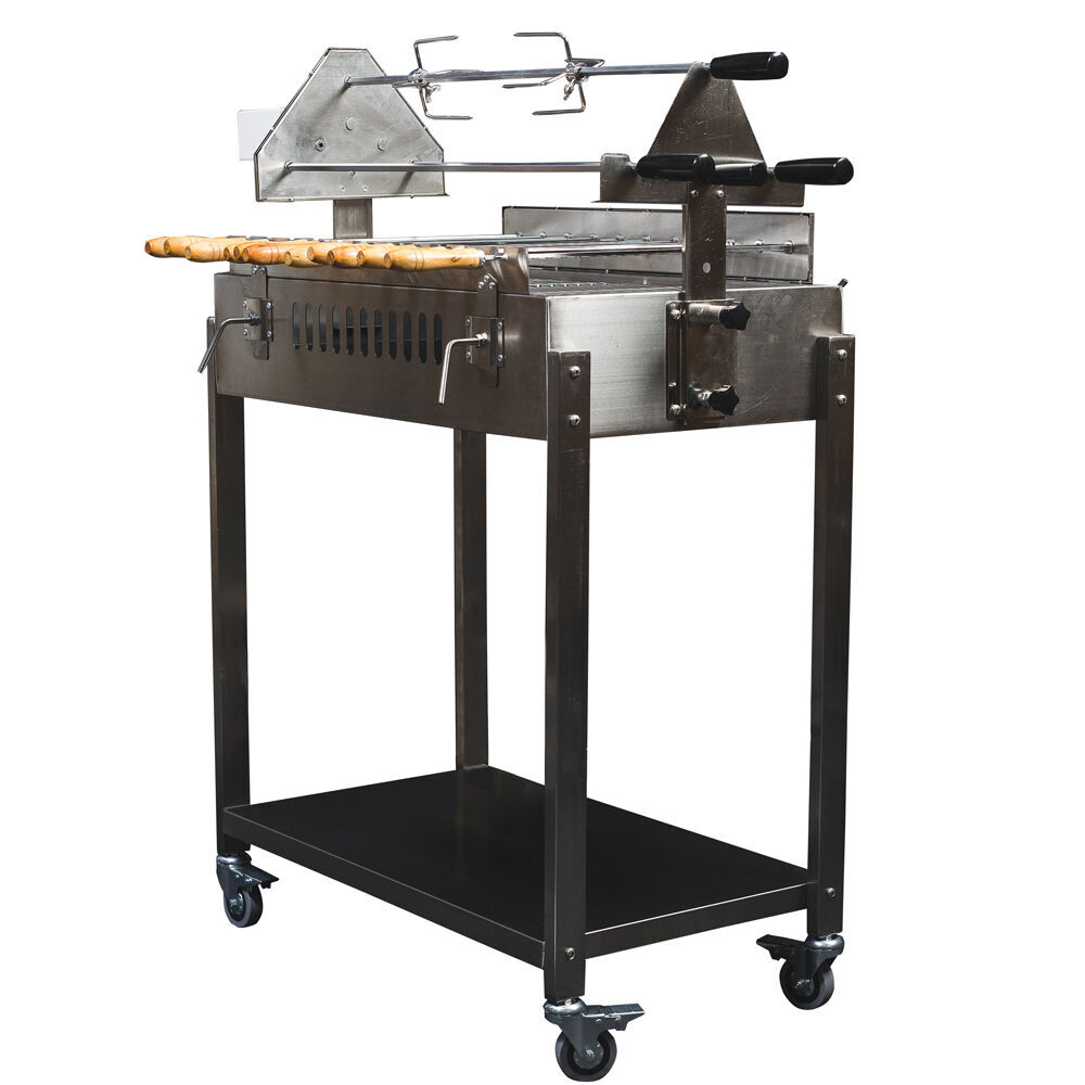 Constructed from durable stainless steel, this spit resists corrosion and is built for years of use. Four lockable wheels add easy mobility, while the charcoal pan makes cleaning up straightforward after every cook.