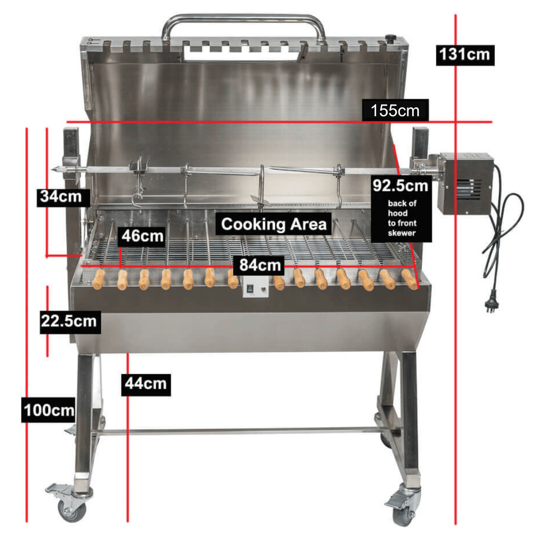 | Main Skewer Capacity | 30kg motor that handles large roasts and whole lamb with ease |