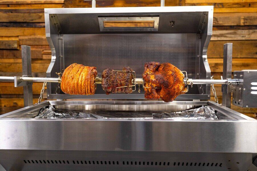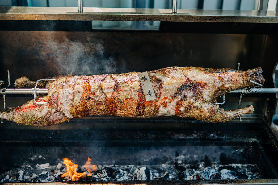 This hollow, one-piece, stainless steel skewer 1200mm is strong enough to hold 60kgs of meat.