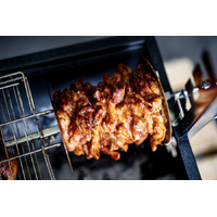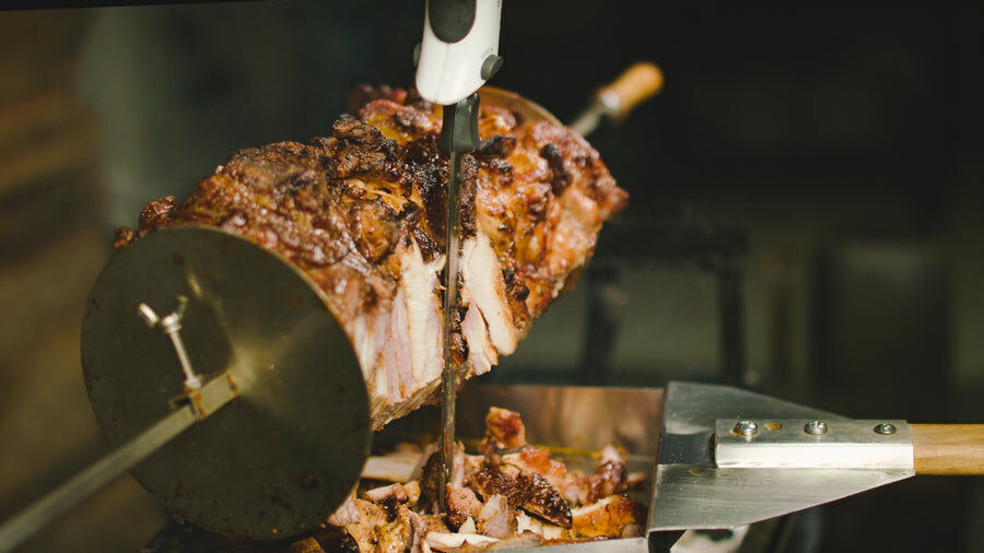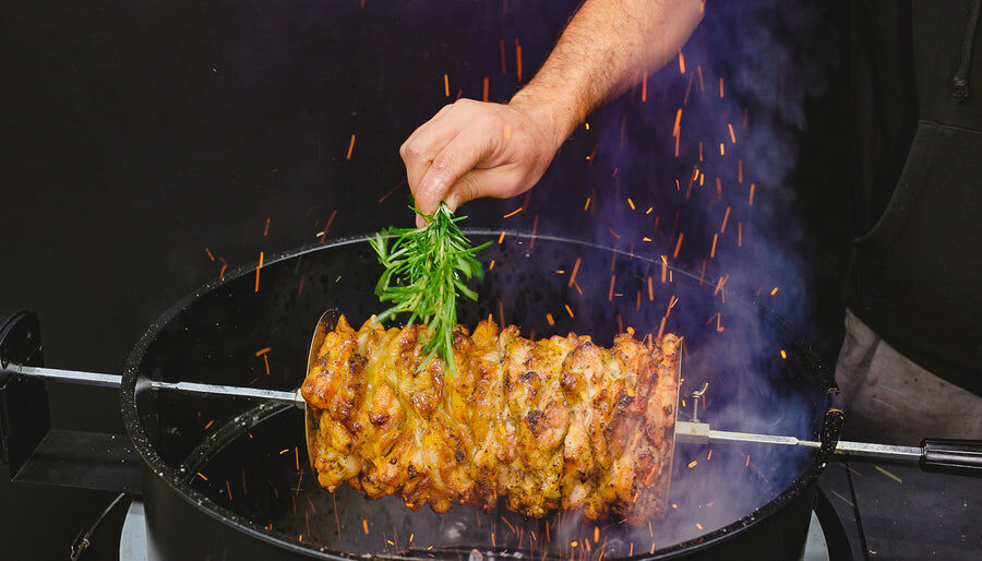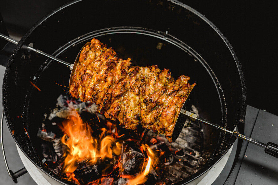 Souvlaki Stainless Steel Gyros Plate assists in affixing gyros onto your skewer. Just squeeze your meat in between two disks and they work as well as a prong/spike, only it's easier to carve the meat because there aren't any spikes to avoid.