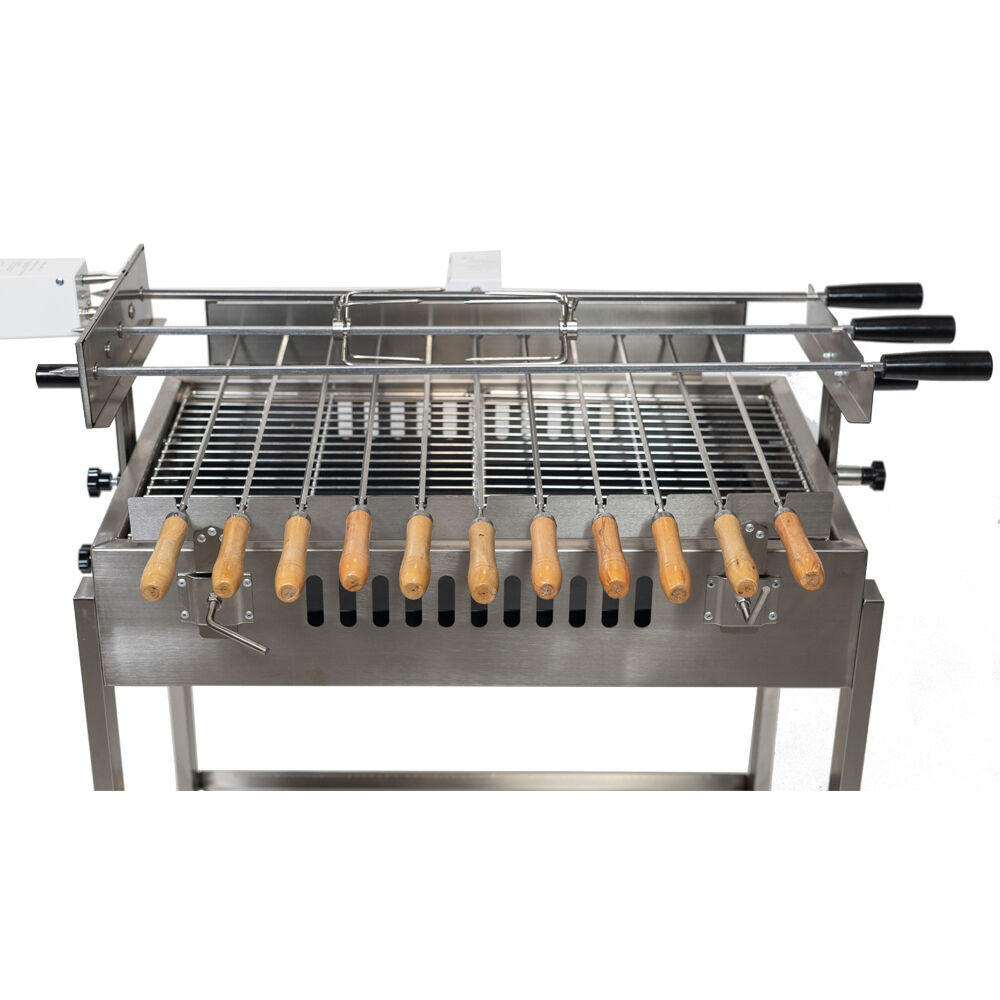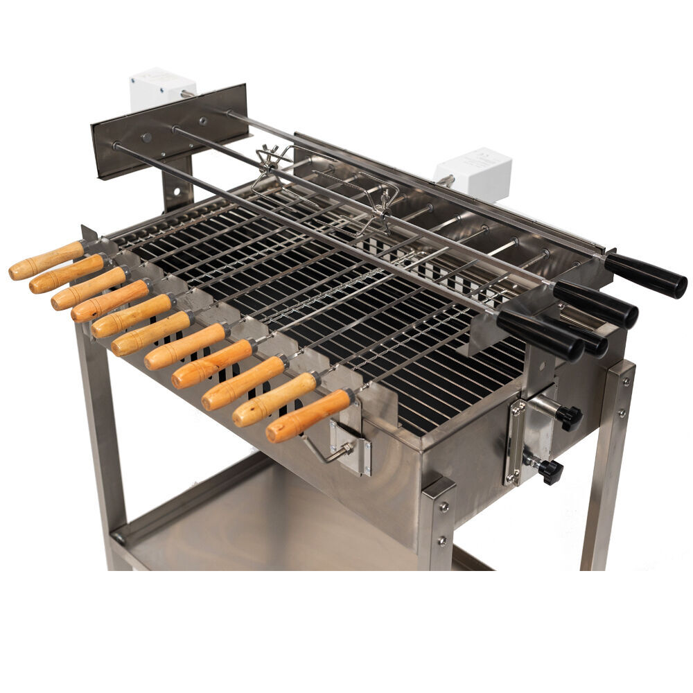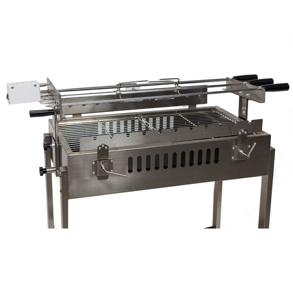 The Straight 3 skewer in-line Cyprus Spit | Stainless Steel makes grilling with charcoal easy and convenient. You can load all of the three main skewers with meat and cook them so they are ready at the same time. If you are just cooking for yourself then you can put a roast only on one of the skewers and enjoy a meal you would expect from the best restaurants in town. You don't need to use all the skewers but they are there for when you need them.