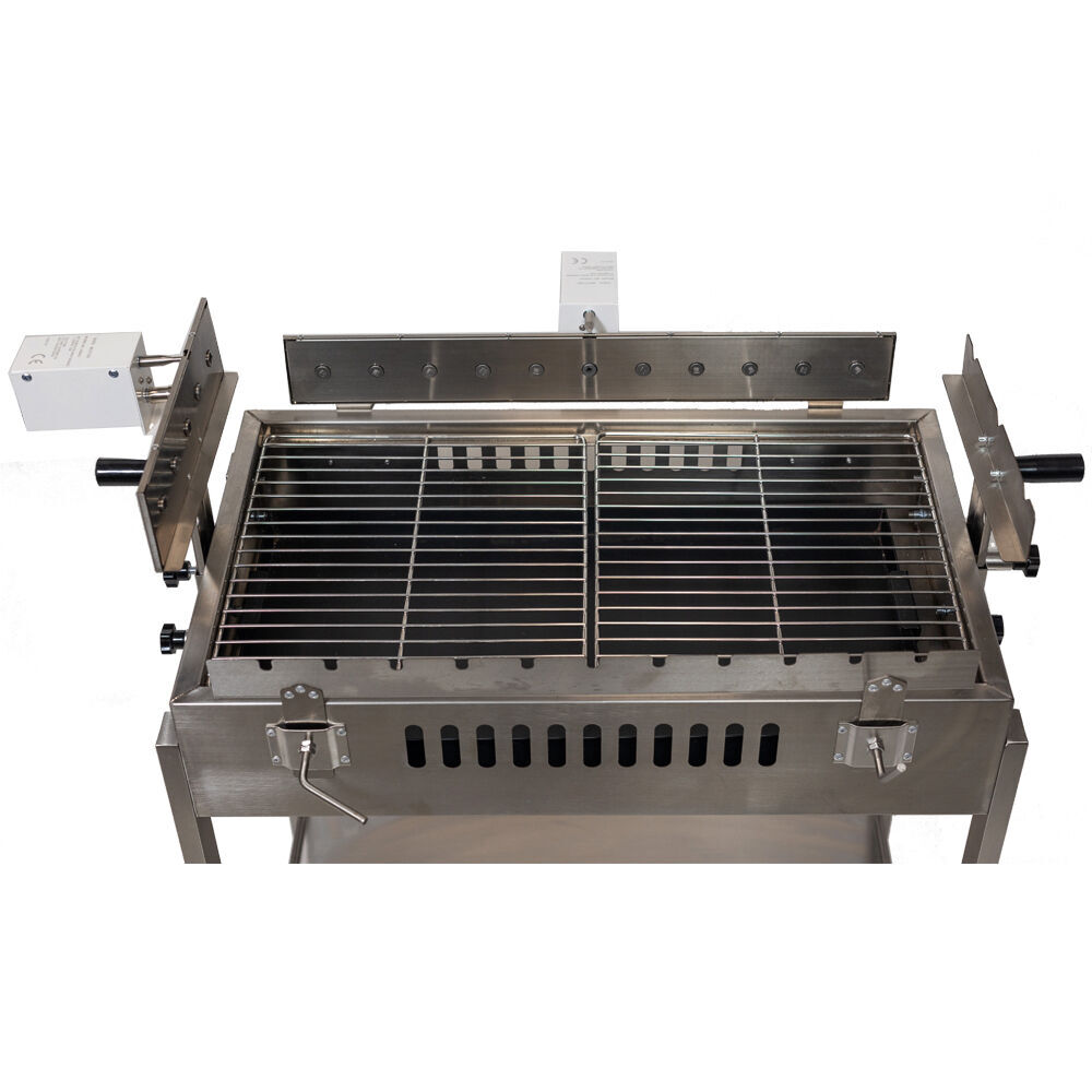 Just like your traditional 3 skewer clover design Cyprus Grills, the straight 3 skewer mechanism works with the same principle but with the benefit of cooking all 3 skewers at the same temperature all the way through the cook so theoretically they should be ready at the same time. In a real use situation, this is rarely the case as you would have different types of meat that require different temperature. Some proteins cook faster than others so the clover design lets you have a skewer slightly higher away from the heat if needed. With this Cypris Spit model comprising of 3 skewers in a straight line, it makes it perfect but not limited to cooking Picanha and kokoretsi (kokoreç) on all 3 skewers or gyros on the 2 outer skewers.