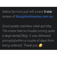 You'll be cooking in no time at all on the spit you can assemble in less than 5 minutes! Whether you're wanting to cook gyros, chickens or roasts, The Master 1200 Stainless Steel Spit Roaster with 30kg Motor is a great choice for those that want something that is built to last.