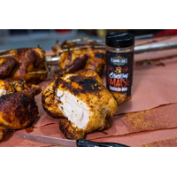 An all-time favourite, this Flaming Coals Chicken Rub transforms chicken with bold herbs and spices. Simply coat your bird, cook over charcoal, and finish with lemon juice for unbeatable flavour.