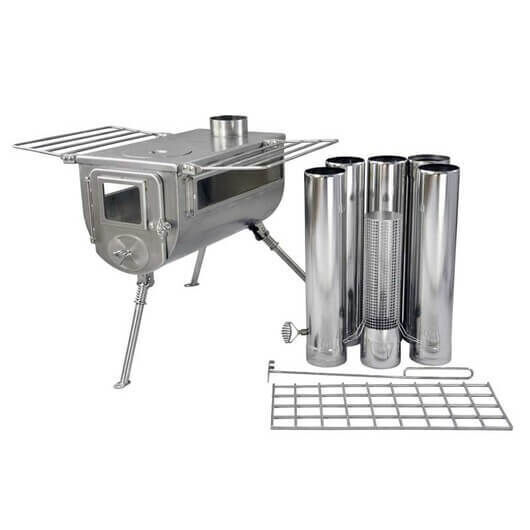 The stove has three viewing windows, the Winnerwell? Woodlander Double View Large Wood Burning Camping Stove is deal for use in compatible tents, the Woodlander also works well in recreational shelters such as teepees, bell tents, and even tiny homes and vans when properly installed. The 304 stainless steel construction prevents rust and corrosion.
